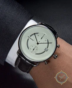 Eine Minimalistisch-Uhr gefertigt aus Edelstahl mit einem Zifferblatt in weiß und einer besonderen "matte"-Oberfläche.