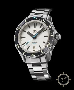 Eine Taucheruhr-Uhr mit einem 32mm Gehäuse im Vintage-Stil gefertigt aus Edelstahl mit einem Zifferblatt in weiß und einer besonderen "matte"-Oberfläche.