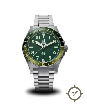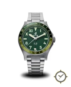 Eine GMT-Uhr mit einem markanten 44.5mm Auftritt am Handgelenk, gefertigt aus Beschichtung mit einem Zifferblatt in schwarz und einer besonderen "matte"-Oberfläche und einer echten GMT-Funktion, mit der du eine zweite Zeitzone verfolgen kannst.