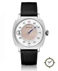 Eine Dress-Uhr mit einem markanten 43.5mm Auftritt am Handgelenk, gefertigt aus Edelstahl mit einem Zifferblatt in weiß und einer besonderen "concentric guilloché center with smooth outer chapter ring"-Oberfläche.