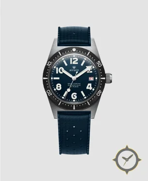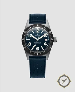 Eine Taucheruhr-Uhr mit einem vielseitigen 41mm Gehäuse, das an fast jedes Handgelenk passt, gefertigt aus Edelstahl mit einem Zifferblatt in blau und einer besonderen "sunburst / fumé"-Oberfläche.