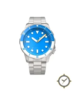 Eine Taucheruhr-Uhr mit einem vielseitigen 39mm Gehäuse, das an fast jedes Handgelenk passt, gefertigt aus Edelstahl mit einem Zifferblatt in blau und einer besonderen "matte"-Oberfläche.