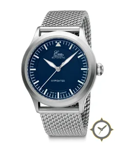 Eine Pilot-Uhr mit einem markanten 47.5mm Auftritt am Handgelenk, gefertigt aus Edelstahl mit einem Zifferblatt in blau und einer besonderen "matte"-Oberfläche.