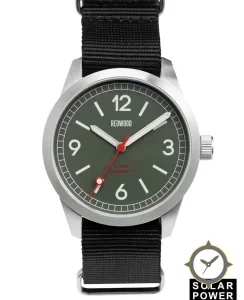 Eine Field-Uhr mit einem vielseitigen 41mm Gehäuse, das an fast jedes Handgelenk passt, gefertigt aus Edelstahl mit einem Zifferblatt in grün und einer besonderen "matte"-Oberfläche.