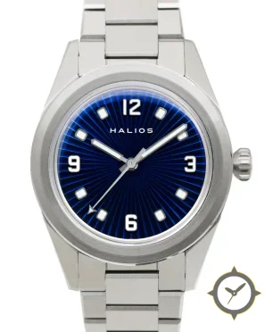 Eine Sport-Uhr mit einem markanten 42mm Auftritt am Handgelenk, gefertigt aus Edelstahl mit einem Zifferblatt in blau und einer besonderen "sunburst"-Oberfläche.