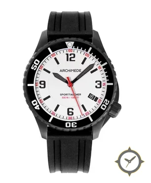 Eine Taucheruhr-Uhr mit einem 34mm Gehäuse im Vintage-Stil gefertigt aus Edelstahl mit einem Zifferblatt in weiß und einer besonderen "matte"-Oberfläche.