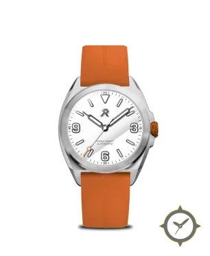 Eine Field-Uhr mit einem 31.5mm Gehäuse im Vintage-Stil gefertigt aus Edelstahl mit einem Zifferblatt in weiß und einer besonderen "smooth"-Oberfläche.