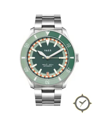 Eine Taucheruhr-Uhr mit einem 32mm Gehäuse im Vintage-Stil gefertigt aus Edelstahl mit einem Zifferblatt in grün und einer besonderen "matte"-Oberfläche.