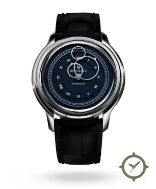 Eine Dress-Uhr mit einem markanten 42.5mm Auftritt am Handgelenk, gefertigt aus Edelstahl mit einem Zifferblatt in marineblau und einer besonderen "lacquer (glossy)"-Oberfläche.
