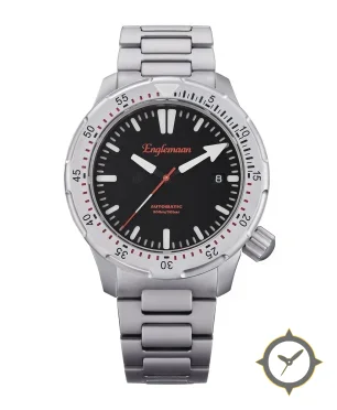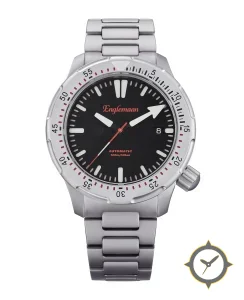 Eine Taucheruhr-Uhr mit einem vielseitigen 38mm Gehäuse, das an fast jedes Handgelenk passt, gefertigt aus Edelstahl mit einem Zifferblatt in schwarz und einer besonderen "matte"-Oberfläche.