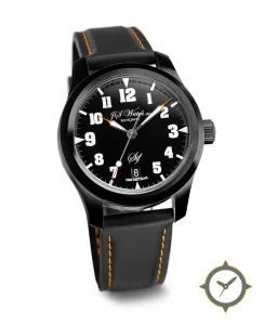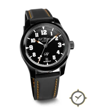 Eine Pilot-Uhr mit einem 36mm Gehäuse im Vintage-Stil gefertigt aus Edelstahl mit einem Zifferblatt in schwarz und einer besonderen "matte"-Oberfläche.