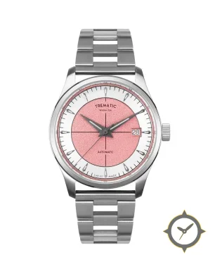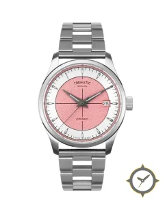 Eine Sport-Uhr mit einem vielseitigen 40mm Gehäuse, das an fast jedes Handgelenk passt, gefertigt aus Edelstahl mit einem Zifferblatt in rot und einer besonderen "granular / sandblasted"-Oberfläche.