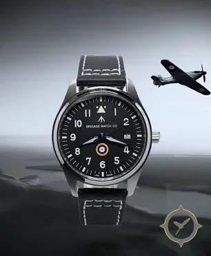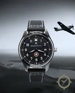 Eine Pilot-Uhr mit einem 36.5mm Gehäuse im Vintage-Stil gefertigt aus Edelstahl mit einem Zifferblatt in schwarz und einer besonderen "matte"-Oberfläche.