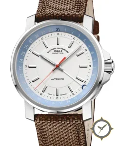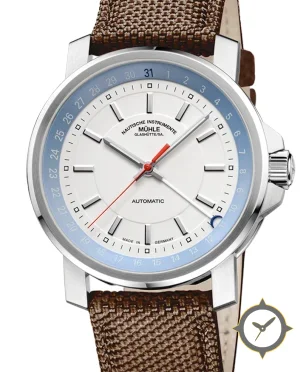 Eine Nautisch-Uhr mit einem markanten 46.5mm Auftritt am Handgelenk, gefertigt aus Edelstahl mit einem Zifferblatt in weiß und einer besonderen "matte"-Oberfläche.
