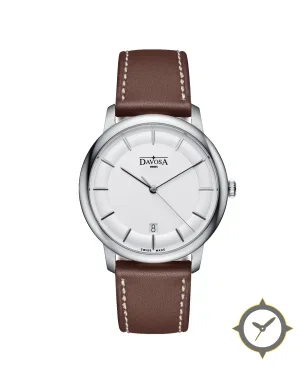 Eine Dress-Uhr mit einem 37mm Gehäuse im Vintage-Stil gefertigt aus Edelstahl mit einem Zifferblatt in weiß und einer besonderen "smooth matte"-Oberfläche.