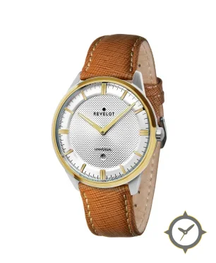 Eine Dress-Uhr mit einem 37.5mm Gehäuse im Vintage-Stil gefertigt aus Edelstahl mit einem Zifferblatt in weiß und einer besonderen "guilloché / clous de Paris textured (engine-turned waffle)"-Oberfläche.