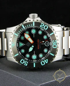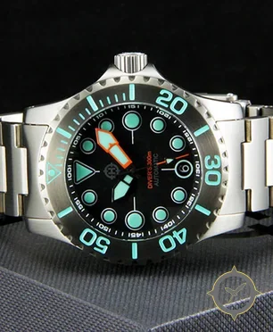 Eine Taucheruhr-Uhr mit einem vielseitigen 40.5mm Gehäuse, das an fast jedes Handgelenk passt, gefertigt aus Edelstahl mit einem Zifferblatt in schwarz und einer besonderen "matte"-Oberfläche.