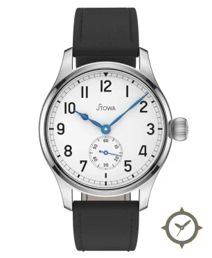 Eine Nautisch-Uhr mit einem 29mm Gehäuse im Vintage-Stil gefertigt aus Edelstahl mit einem Zifferblatt in weiß und einer besonderen "lacquer"-Oberfläche.