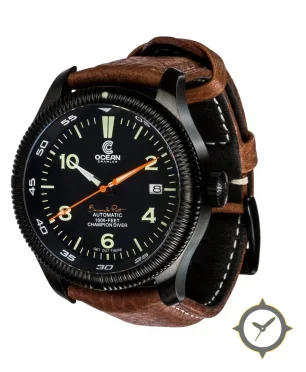Eine Taucheruhr-Uhr mit einem markanten 47mm Auftritt am Handgelenk, gefertigt aus Edelstahl mit einem Zifferblatt in schwarz und einer besonderen "matte"-Oberfläche.