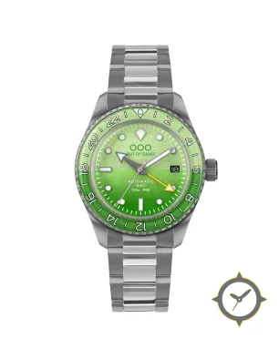 Eine GMT-Uhr mit einem vielseitigen 41mm Gehäuse, das an fast jedes Handgelenk passt, gefertigt aus Edelstahl mit einem Zifferblatt in grün und einer besonderen "grained (textured)"-Oberfläche und einer echten GMT-Funktion, mit der du eine zweite Zeitzone verfolgen kannst.