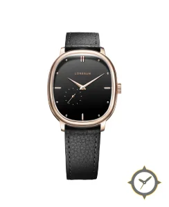 Eine Dress-Uhr mit einem 32.5mm Gehäuse im Vintage-Stil gefertigt aus Gold mit einem Zifferblatt in schwarz und einer besonderen "glossy lacquer"-Oberfläche.