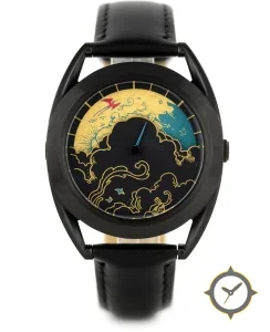 Eine Dress-Uhr mit einem 33.5mm Gehäuse im Vintage-Stil gefertigt aus Edelstahl mit einem Zifferblatt in schwarz und einer besonderen "lacquered/painted with gilt printing"-Oberfläche.
