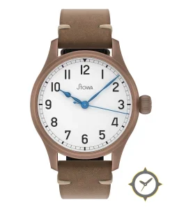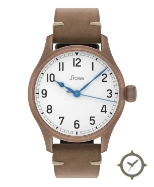 Eine Pilot-Uhr mit einem 31.5mm Gehäuse im Vintage-Stil gefertigt aus Bronze mit einem Zifferblatt in weiß und einer besonderen "matte"-Oberfläche.