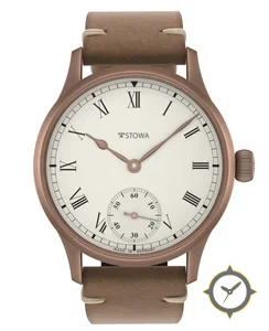 Eine Dress-Uhr mit einem 33.5mm Gehäuse im Vintage-Stil gefertigt aus Bronze mit einem Zifferblatt in weiß und einer besonderen "matte, lightly grained/eggshell finish"-Oberfläche.