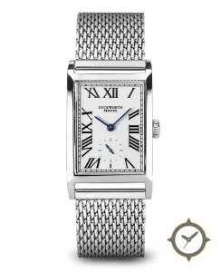 Eine Dress-Uhr mit einem 28mm Gehäuse im Vintage-Stil gefertigt aus Edelstahl mit einem Zifferblatt in weiß und einer besonderen "glossy-lacquer/enamel"-Oberfläche.