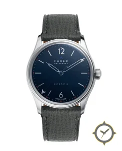 Eine Dress-Uhr mit einem 33mm Gehäuse im Vintage-Stil gefertigt aus Edelstahl mit einem Zifferblatt in marineblau und einer besonderen "lacquered sunburst"-Oberfläche.