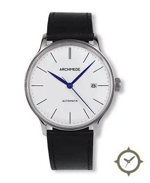 Eine Minimalistisch-Uhr mit einem vielseitigen 38.5mm Gehäuse, das an fast jedes Handgelenk passt, gefertigt aus Edelstahl mit einem Zifferblatt in weiß und einer besonderen "matte"-Oberfläche.