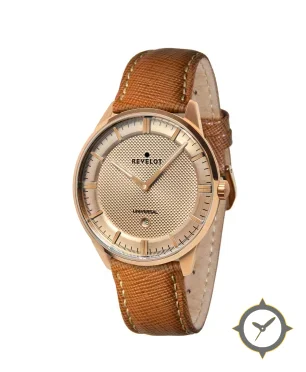 Eine Dress-Uhr mit einem 31mm Gehäuse im Vintage-Stil gefertigt aus Gold mit einem Zifferblatt in gold und einer besonderen "hobnail/guilloché texture"-Oberfläche.