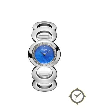 Eine Dress-Uhr mit einem 24.5mm Gehäuse im Vintage-Stil gefertigt aus Edelstahl mit einem Zifferblatt in blau und einer besonderen "mother-of-pearl (iridescent)"-Oberfläche.