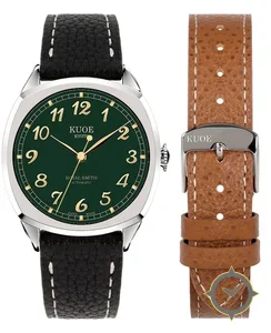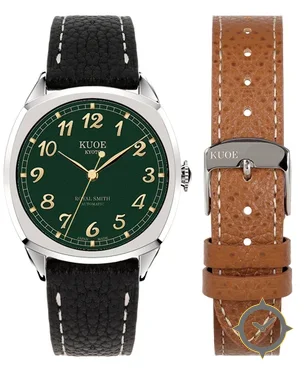 Eine Dress-Uhr mit einem 35.5mm Gehäuse im Vintage-Stil gefertigt aus Edelstahl mit einem Zifferblatt in grün und einer besonderen "grained"-Oberfläche.