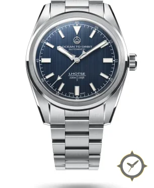 Eine Sport-Uhr mit einem vielseitigen 39.5mm Gehäuse, das an fast jedes Handgelenk passt, gefertigt aus Edelstahl mit einem Zifferblatt in blau und einer besonderen "vertical brushed finish"-Oberfläche.
