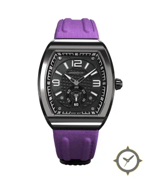 Eine Sport-Uhr gefertigt aus Edelstahl mit einem Zifferblatt in schwarz und einer besonderen "woven carbon-fiber texture in the center with radial brushed outer ring"-Oberfläche.