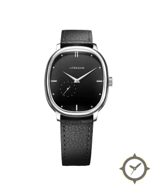 Eine Dress-Uhr mit einem vielseitigen 39mm Gehäuse, das an fast jedes Handgelenk passt, gefertigt aus Edelstahl mit einem Zifferblatt in schwarz und einer besonderen "glossy lacquer"-Oberfläche.