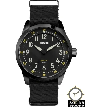 Eine Pilot-Uhr mit einem vielseitigen 40mm Gehäuse, das an fast jedes Handgelenk passt, gefertigt aus Edelstahl mit einem Zifferblatt in schwarz und einer besonderen "matte"-Oberfläche.