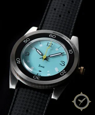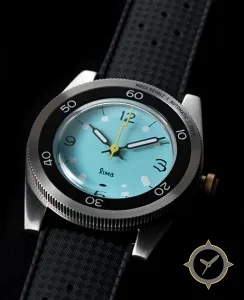 Eine Taucheruhr-Uhr mit einem vielseitigen 40mm Gehäuse, das an fast jedes Handgelenk passt, gefertigt aus Edelstahl mit einem Zifferblatt in türkis und einer besonderen "glossy lacquer"-Oberfläche.