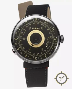 Eine Minimalistisch-Uhr mit einem markanten 46mm Auftritt am Handgelenk, gefertigt aus Edelstahl mit einem Zifferblatt in schwarz und einer besonderen "matte lacquer"-Oberfläche.