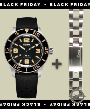 Eine Taucheruhr-Uhr mit einem markanten 41.5mm Auftritt am Handgelenk, gefertigt aus Edelstahl mit einem Zifferblatt in schwarz und einer besonderen "matte"-Oberfläche.