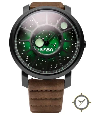 Eine Luftfahrt-Uhr mit einem markanten 43.5mm Auftritt am Handgelenk, gefertigt aus Edelstahl mit einem Zifferblatt in grün und einer besonderen "gradient"-Oberfläche.