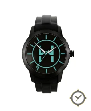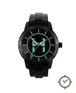 Eine Sport-Uhr mit einem markanten 55mm Auftritt am Handgelenk, gefertigt aus Edelstahl mit einem Zifferblatt in schwarz und einer besonderen "matte"-Oberfläche.