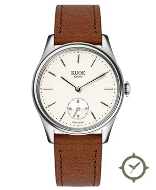 Eine Dress-Uhr mit einem 34mm Gehäuse im Vintage-Stil gefertigt aus Edelstahl mit einem Zifferblatt in weiß und einer besonderen "matte"-Oberfläche.