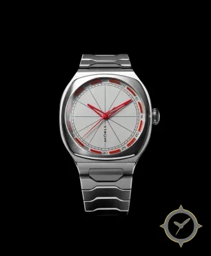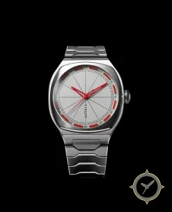 Eine Sport-Uhr mit einem 31.5mm Gehäuse im Vintage-Stil gefertigt aus Edelstahl mit einem Zifferblatt in silber und einer besonderen "brushed"-Oberfläche.