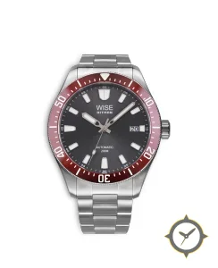 Eine Taucheruhr-Uhr mit einem vielseitigen 41mm Gehäuse, das an fast jedes Handgelenk passt, gefertigt aus Edelstahl mit einem Zifferblatt in schwarz und einer besonderen "matte"-Oberfläche.