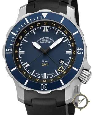 Eine GMT-Uhr mit einem vielseitigen 39mm Gehäuse, das an fast jedes Handgelenk passt, gefertigt aus Edelstahl mit einem Zifferblatt in blau und einer besonderen "sunburst"-Oberfläche und einer echten GMT-Funktion, mit der du eine zweite Zeitzone verfolgen kannst.