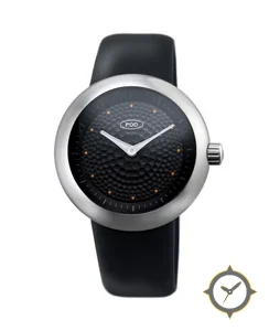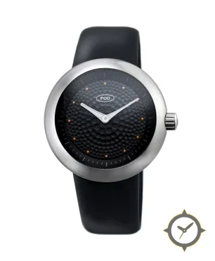 Eine Minimalistisch-Uhr mit einem vielseitigen 39.5mm Gehäuse, das an fast jedes Handgelenk passt, gefertigt aus Edelstahl mit einem Zifferblatt in schwarz und einer besonderen "raised honeycomb / dimpled texture"-Oberfläche.
