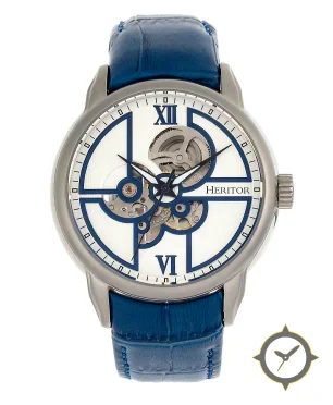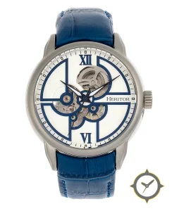 Eine Skelett-Uhr mit einem markanten 53mm Auftritt am Handgelenk, gefertigt aus Edelstahl mit einem Zifferblatt in weiß und einer besonderen "vertical striped"-Oberfläche.