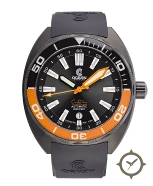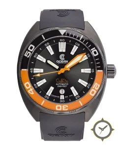 Eine Taucheruhr-Uhr mit einem vielseitigen 40.5mm Gehäuse, das an fast jedes Handgelenk passt, gefertigt aus Edelstahl mit einem Zifferblatt in schwarz und einer besonderen "sunburst / radial brushed"-Oberfläche.